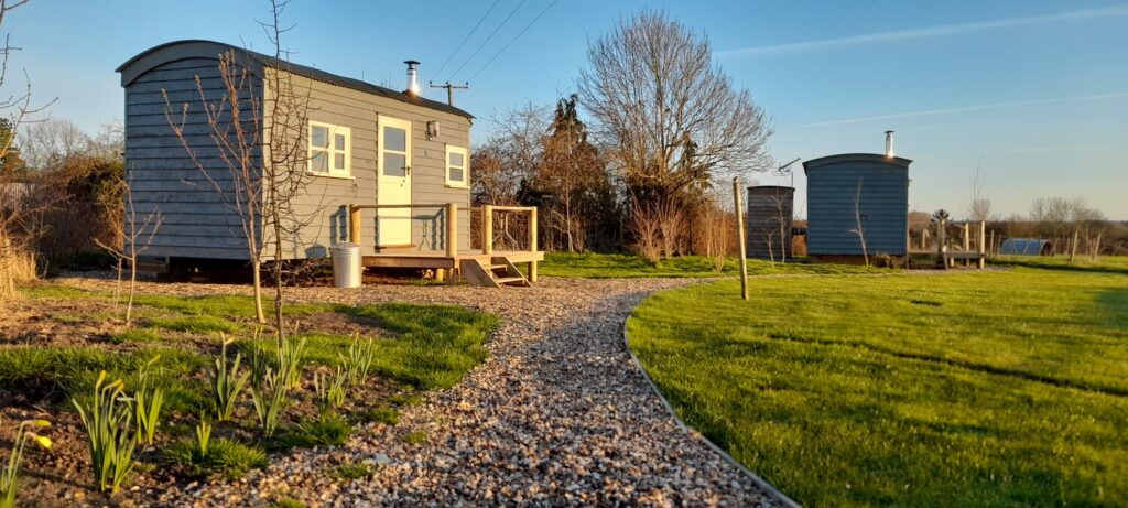 Two beautiful self catering, two berth dog friendly shepherds huts. Set on a working smallholding in the village of Alburgh they boast stunning views over open countryside with the most amazing sunsets.